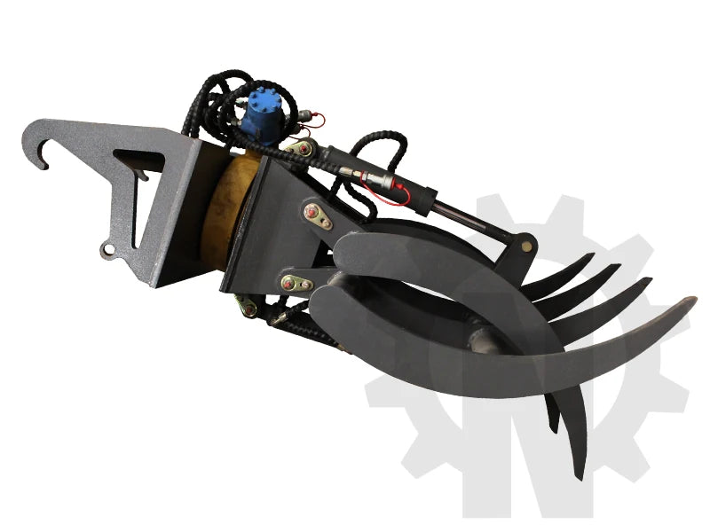 Denna timmergrip från Everun kan rotera hela 360 grader, vilket gör den till ett kraftfullt och mångsidigt redskap för hantering av stockar där förmågan att vrida materialet är nödvändig.