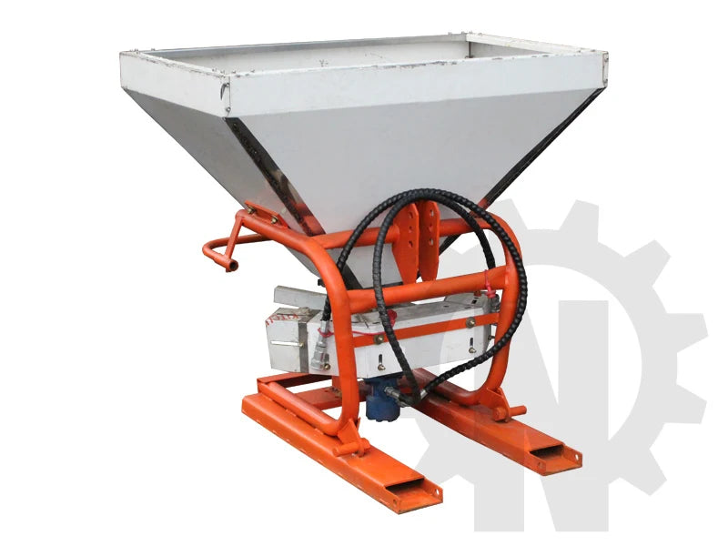 Denna effektiva saltspridare från Everun är ett utmärkt hjälpmedel för halkbekämpning. Den monteras enkelt i fronten på din lastmaskin genom att använda pallgafflarna.